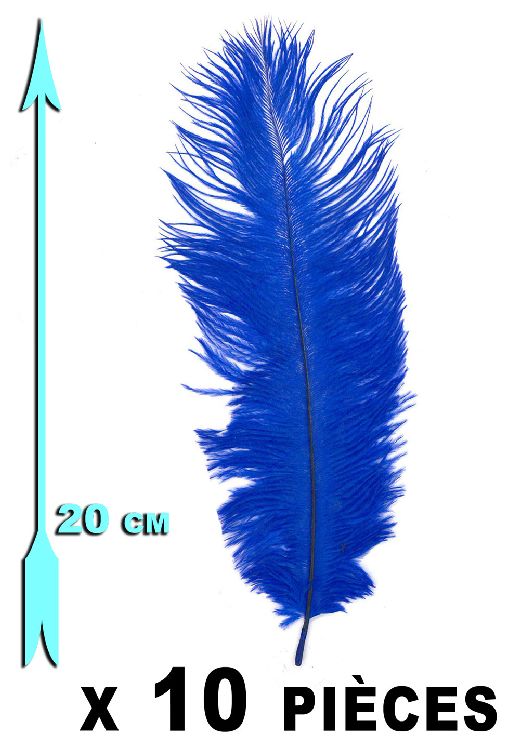 10 plumes bleues-roi de 20 cm de long et 12 cm de large environ très souples pour ornementer et mettre en œuvre tout type de décoration raffinée pour la salle, table et florale.