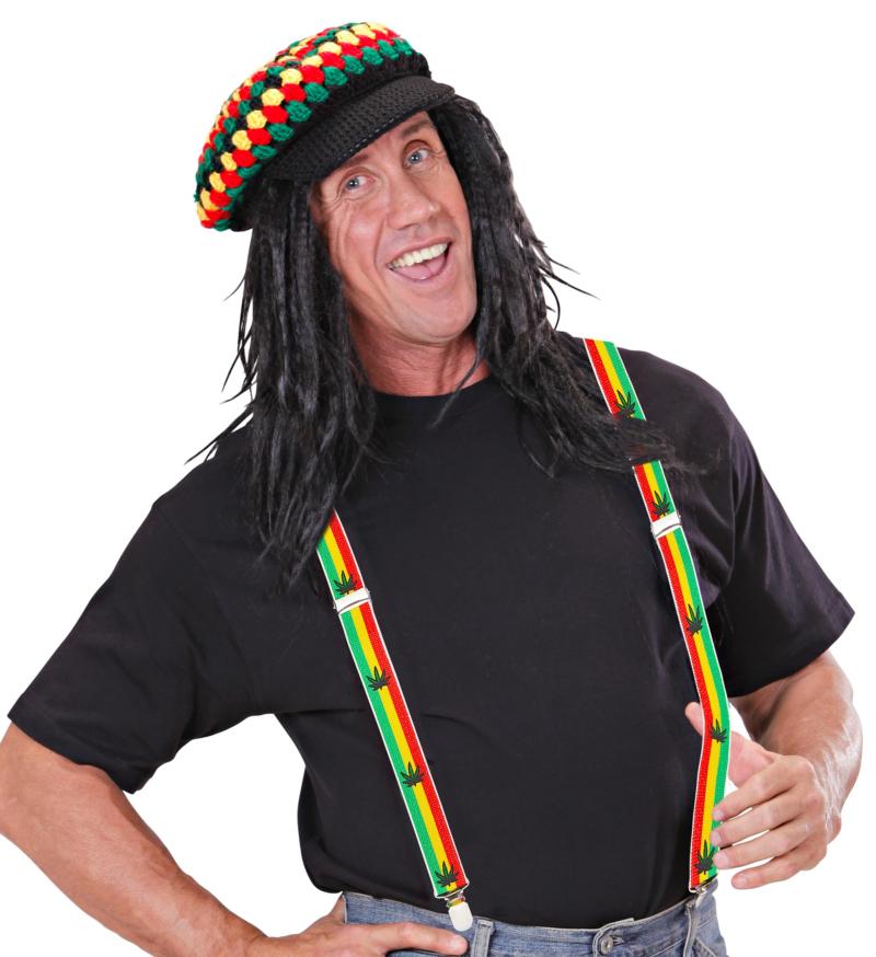 Paire de bretelles rasta Jamaïque réglable pour compléter ou réaliser un déguisement sur le thème de la Jamaïque ou rasta. ce modèle conviendra à toute personne âgée de plus de 10 ans.