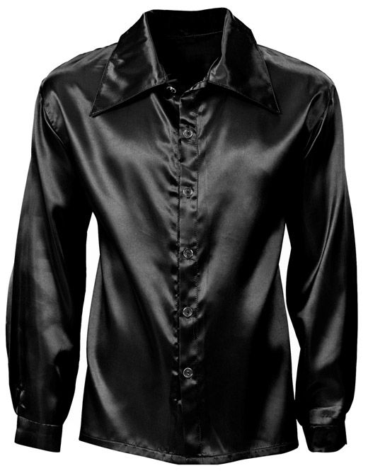 Cette chemise noire satinée stylée conviendra à un homme portant une taille M (40/42).