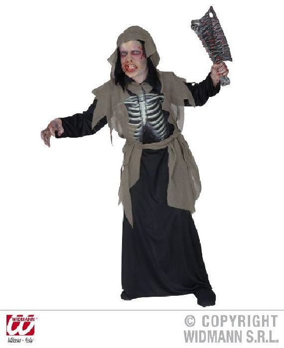 Ce déguisement de zombie mixte comprenant la tunique recouvert d'un tissu haché avec capuche et sa cage thoracique imprimé en vision holographique 3D pour un effet réaliste conviendra à un enfant âgé de 11 à 14 ans mesurant - de 158 cm.