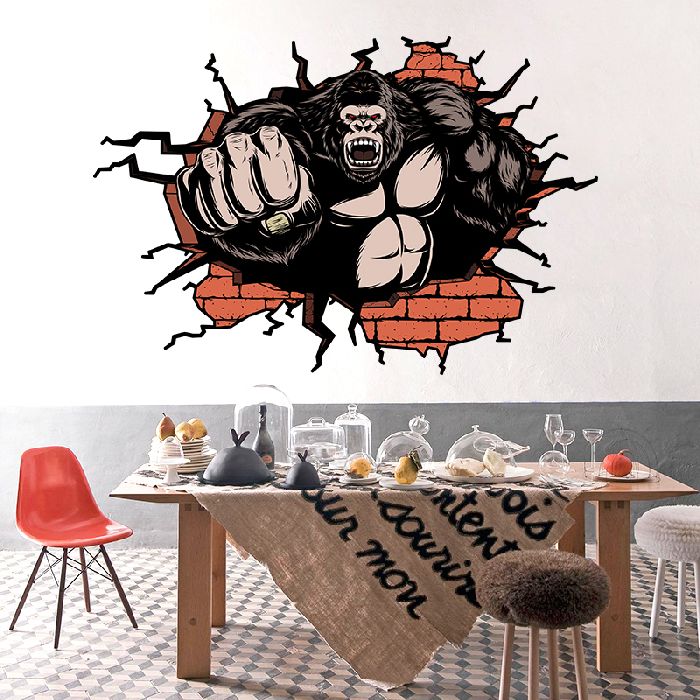 Sticker 3D adhésif gorille dans mûr brisé (58.5 x 87 cm)
