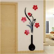 • Vase et fleurs rouges 3D miroir acrylique adhésif (100 x 39 cm)